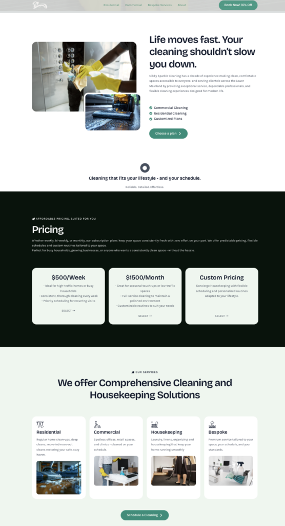 – Brand Discovery: The team defined the visual and messaging style by understanding the company’s values, audience, and service philosophy.