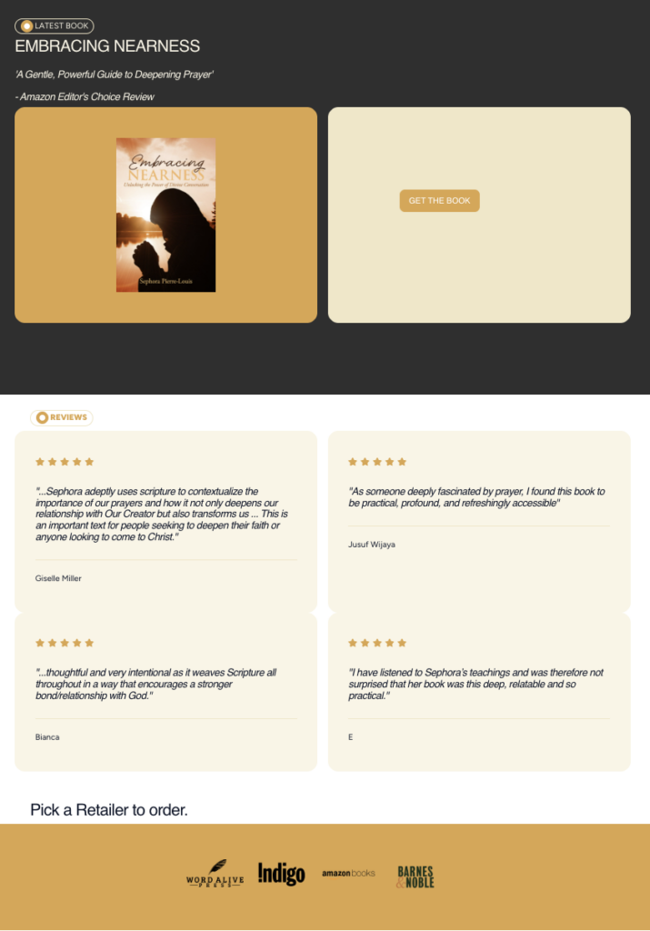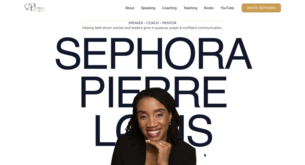 Sephora Pierre Louis is a faith-based motivational speaker, Christian coach, and mentor called to share the Word of God and help individuals grow spiritually, personally, and purposefully. Sephora’s mission is a dedication to helping women and professional immigrants grow in clarity, confidence, and calling.