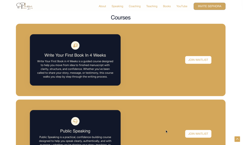 Sephora Pierre Louis is a dedicated communicator, coach, and mentor with a heart for transformation. Sephora walks alongside individuals who desire deeper faith, clarity of purpose, and meaningful growth.